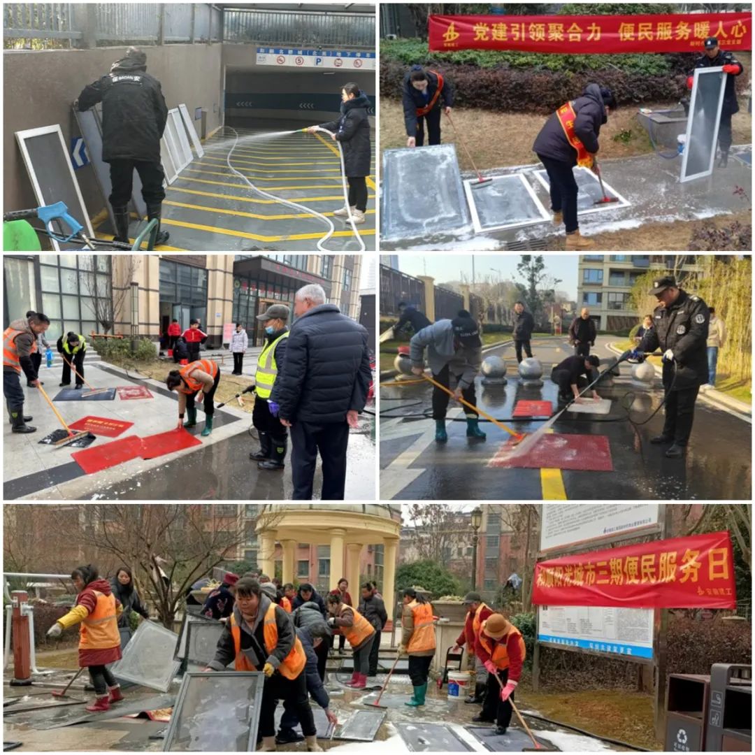 “新年快到了,我们为业主准备了免费冲洗纱窗地垫服务,有的老人腿脚不便,我们会上门取送,坚持把‘贴心服务’落到实处。”一件件地垫、一扇扇纱窗在高压水枪的洗礼下,很快便冲洗干净,错落有序地安放在南陵阳光城市的广场上晾晒。